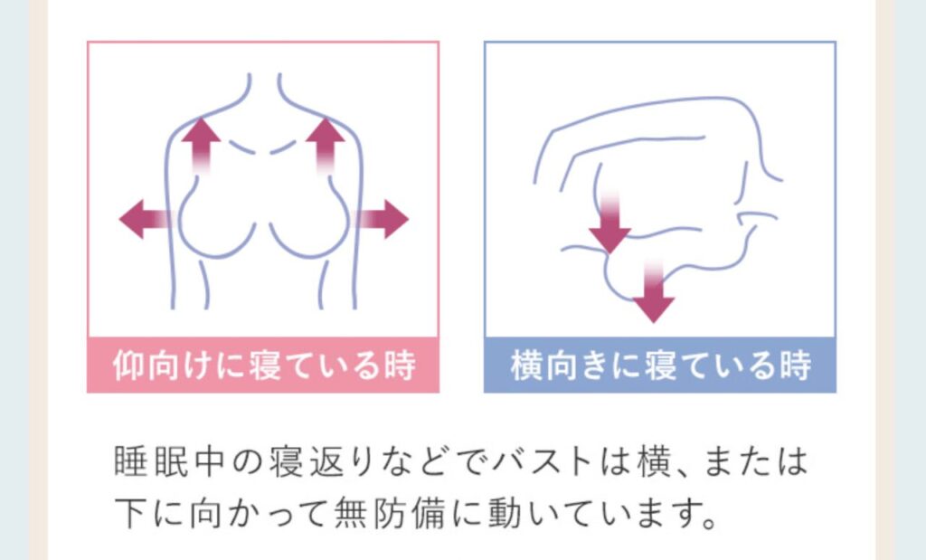 夜は無意識に寝返りを打ったり、横向きやうつぶせになったりすることで、バストが横に流れてしまいやすいですよね。