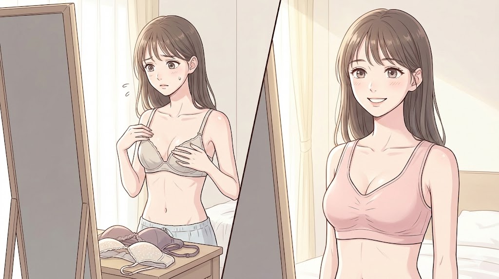アンダーの細さに合わせたサイズ選びや、上部を補うパッドの形、そしてお肉を逃さないための毎日のひと手間が、数ヶ月後のシルエットを左右する大きな鍵になります。