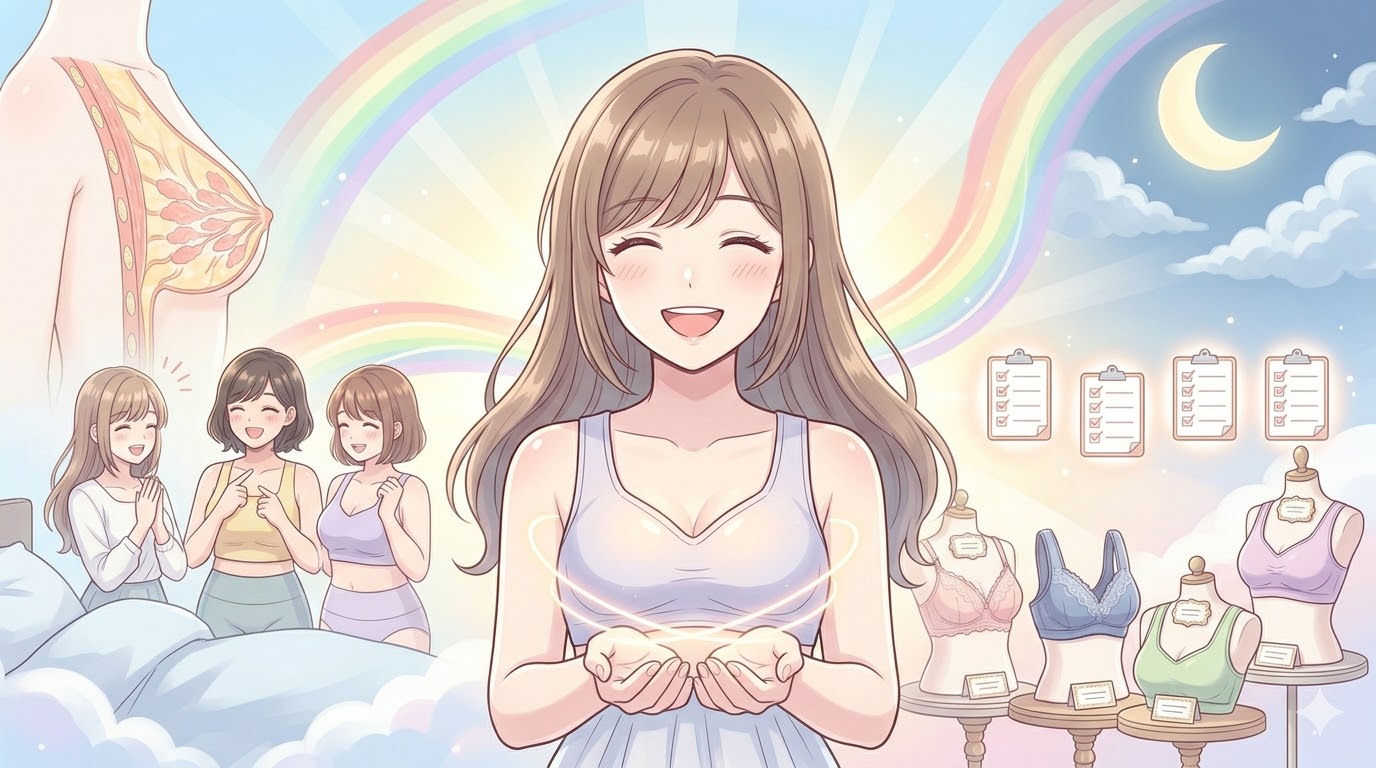 日中の正しい姿勢と夜のナイトブラ、この両輪が揃うことで、理想のバストラインへの道がぐっと近づくと思いますね。