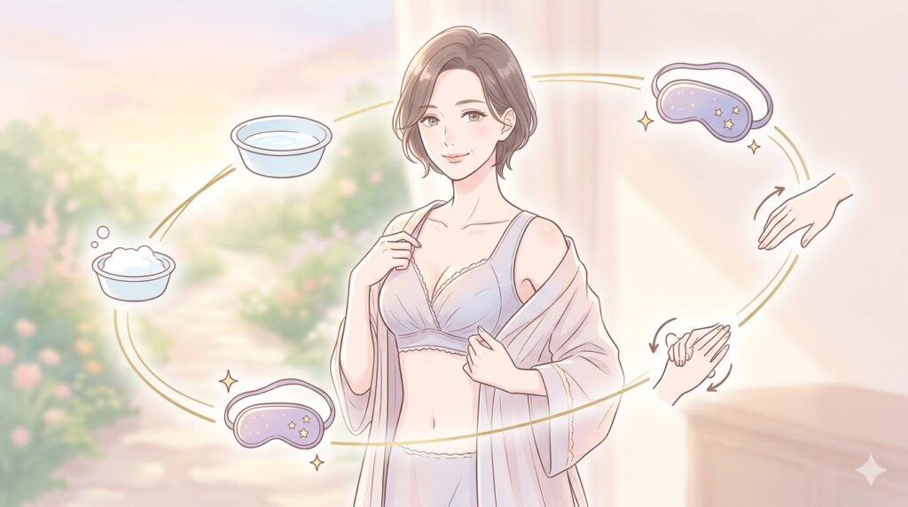 昼はしっかりと形を整えて活動的に過ごし、夜は優しくホールドしながら休息させるというメリハリこそが、バストの健康を保つ秘訣だと言えるでしょう。