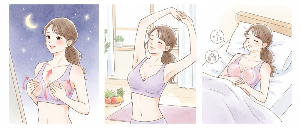 この二つを組み合わせることで、ナイトブラという「守り」のケアが、より効果的な「攻め」のバストケアに変わっていくのを実感できるはずですよ。